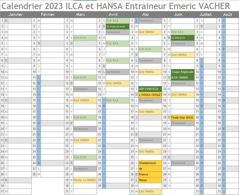 Calendrier 2023 ILCA et HANSA – Printemps
